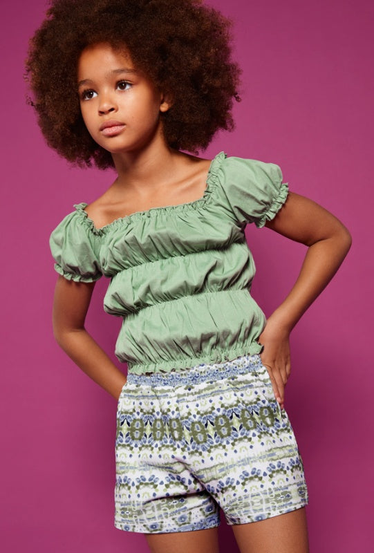 Ikdienas bērnu apģērba gabals, kas radīts komfortam un izturībai. Mīksts un viegli kopjams audums skolai un spēlēm. Lieliski sader ar garderobes pamatelementiem.