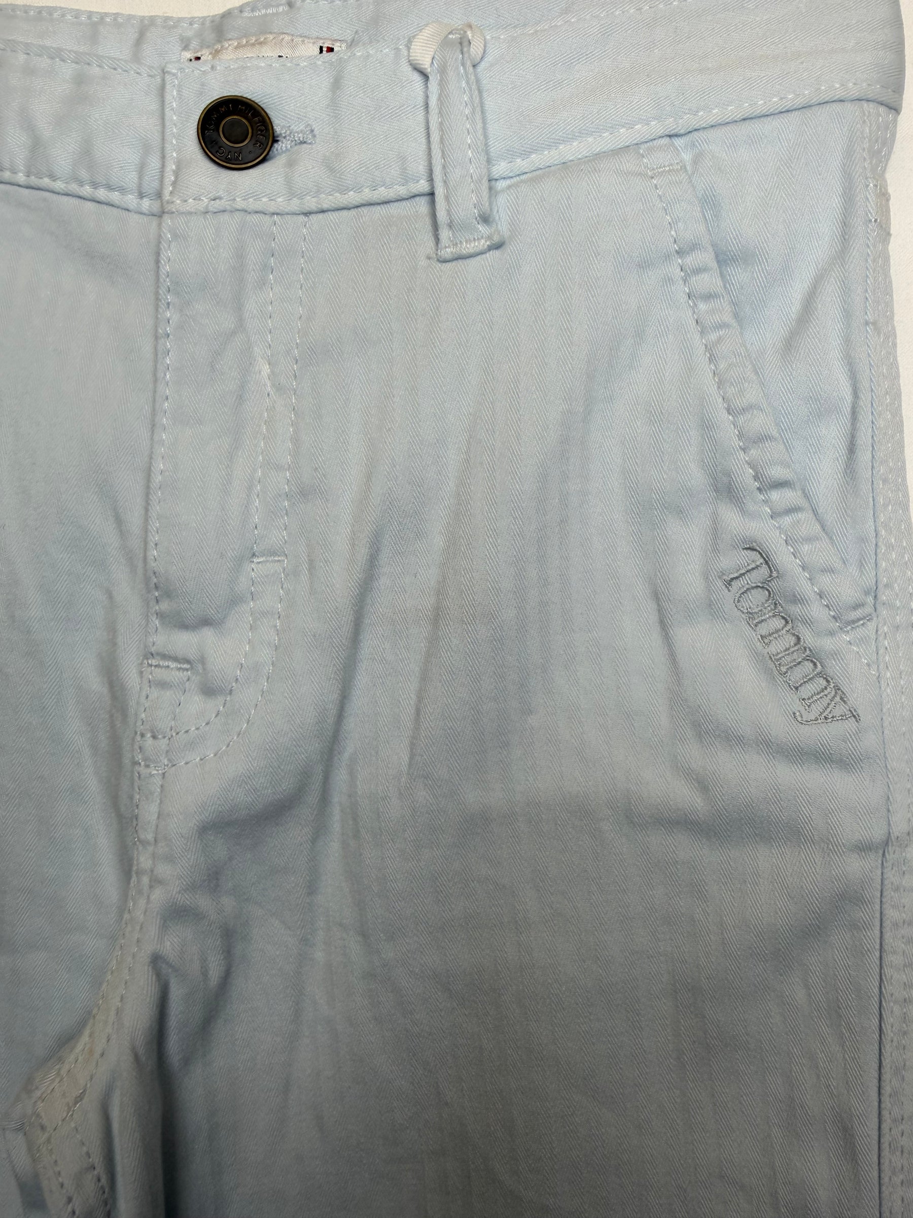 Mabel platas bērnu bikses, mirdzoši zilas, ar divām kabatām aizmugurē, regulējamu jostasvietu un Tommy Hilfiger zīmola kabatu sānos.