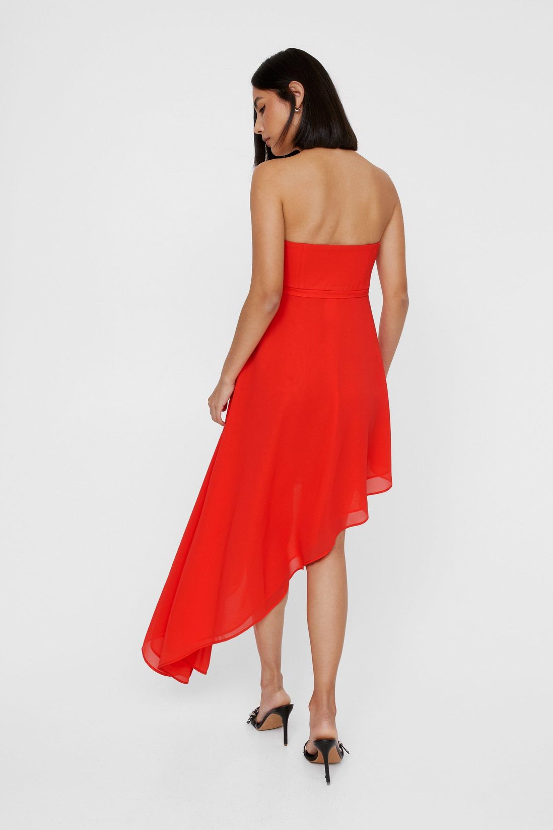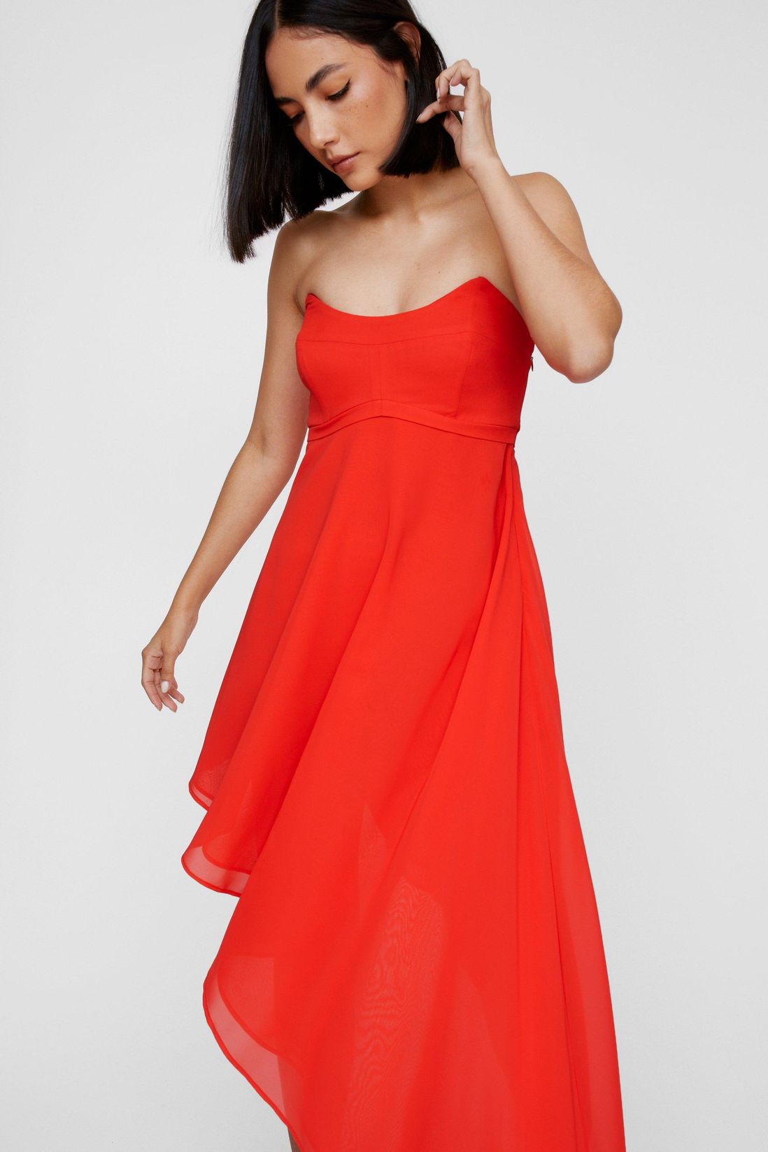 Korsetes bandeau kleita ar asimetrisku apakšmalu