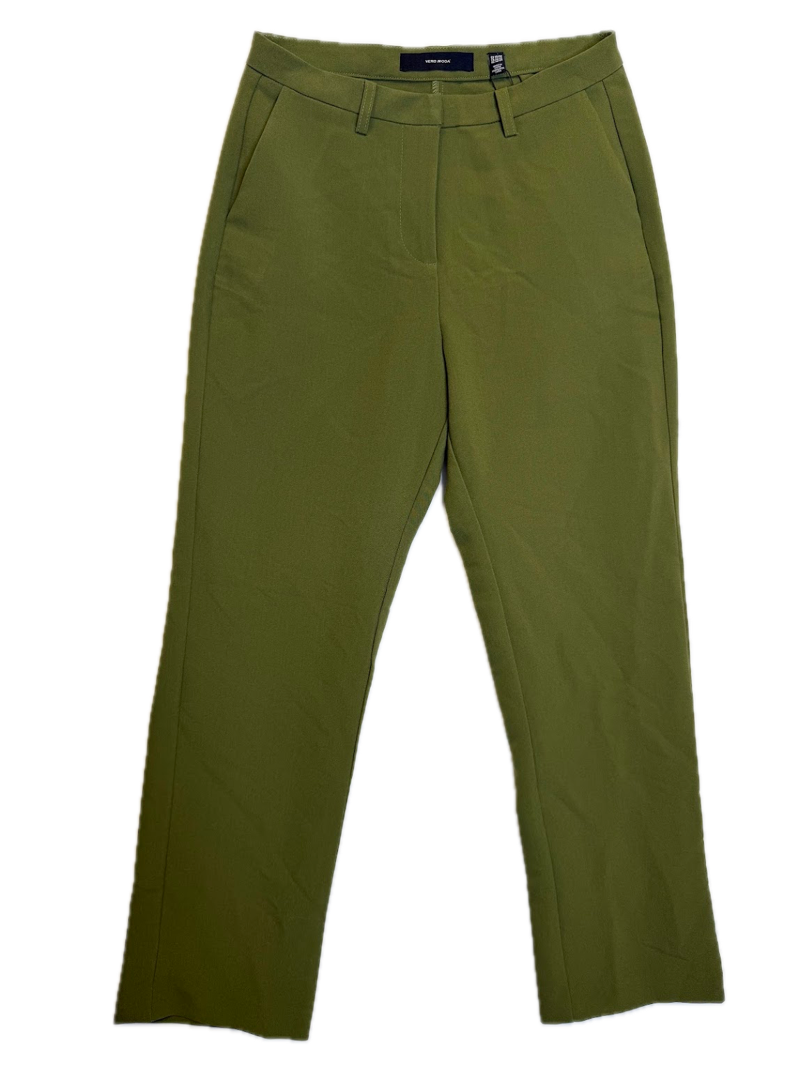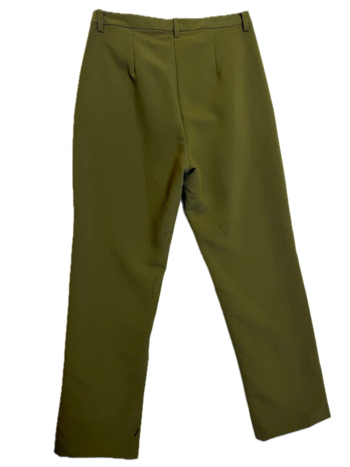Smart olive green trousers designed with a flat front,belt loops,and a straight leg fit.
