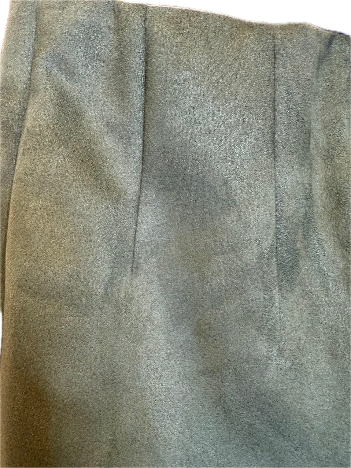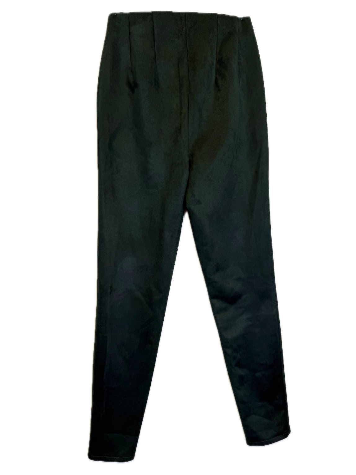 Sleek dark green leggings featuring a soft faux suede finish,panel details,and a side zipper closure.