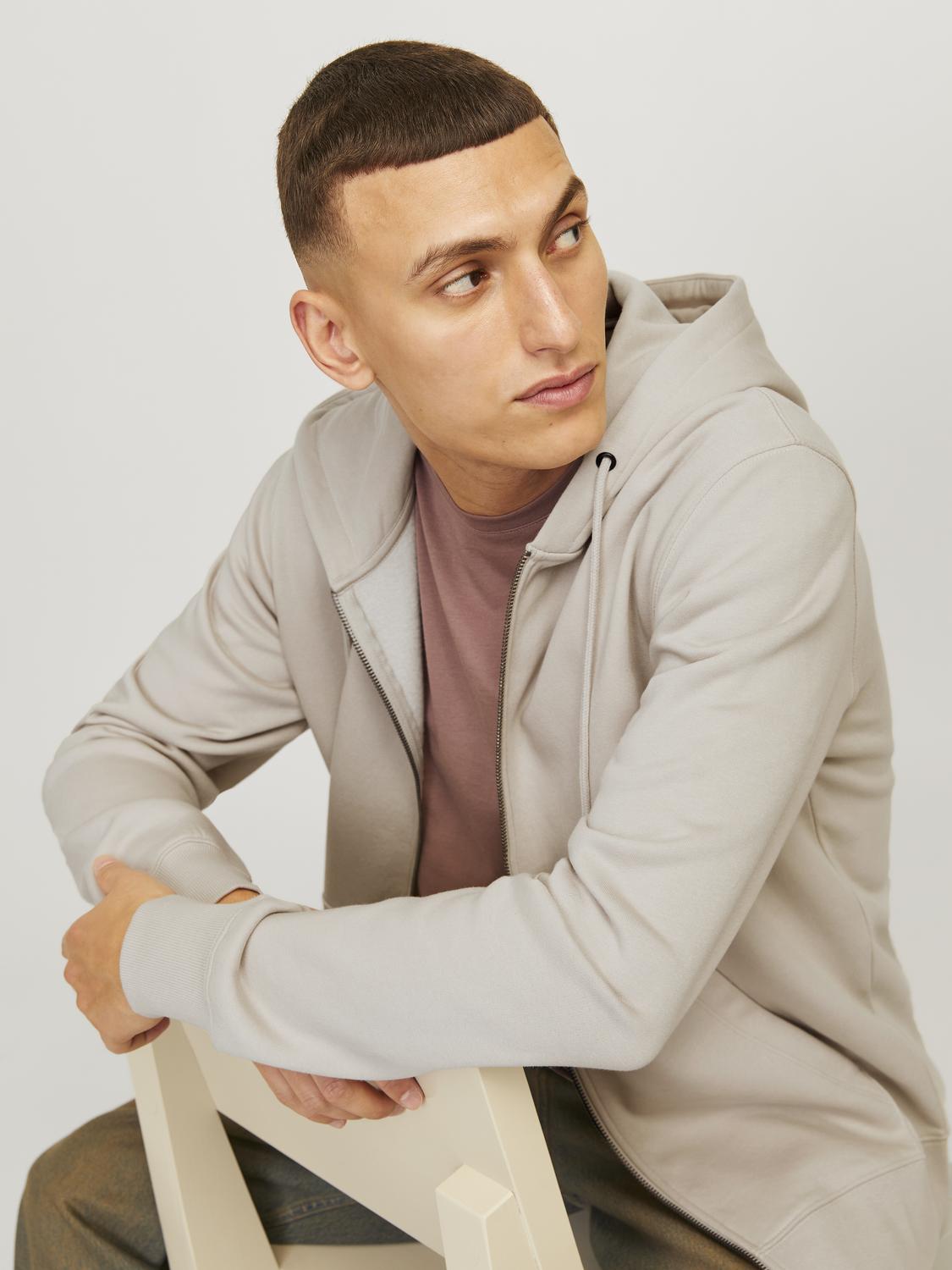 Essential basic hoodie in moonbeam beige with soft brushed interior. Features a drawstring hood and kangaroo pocket.