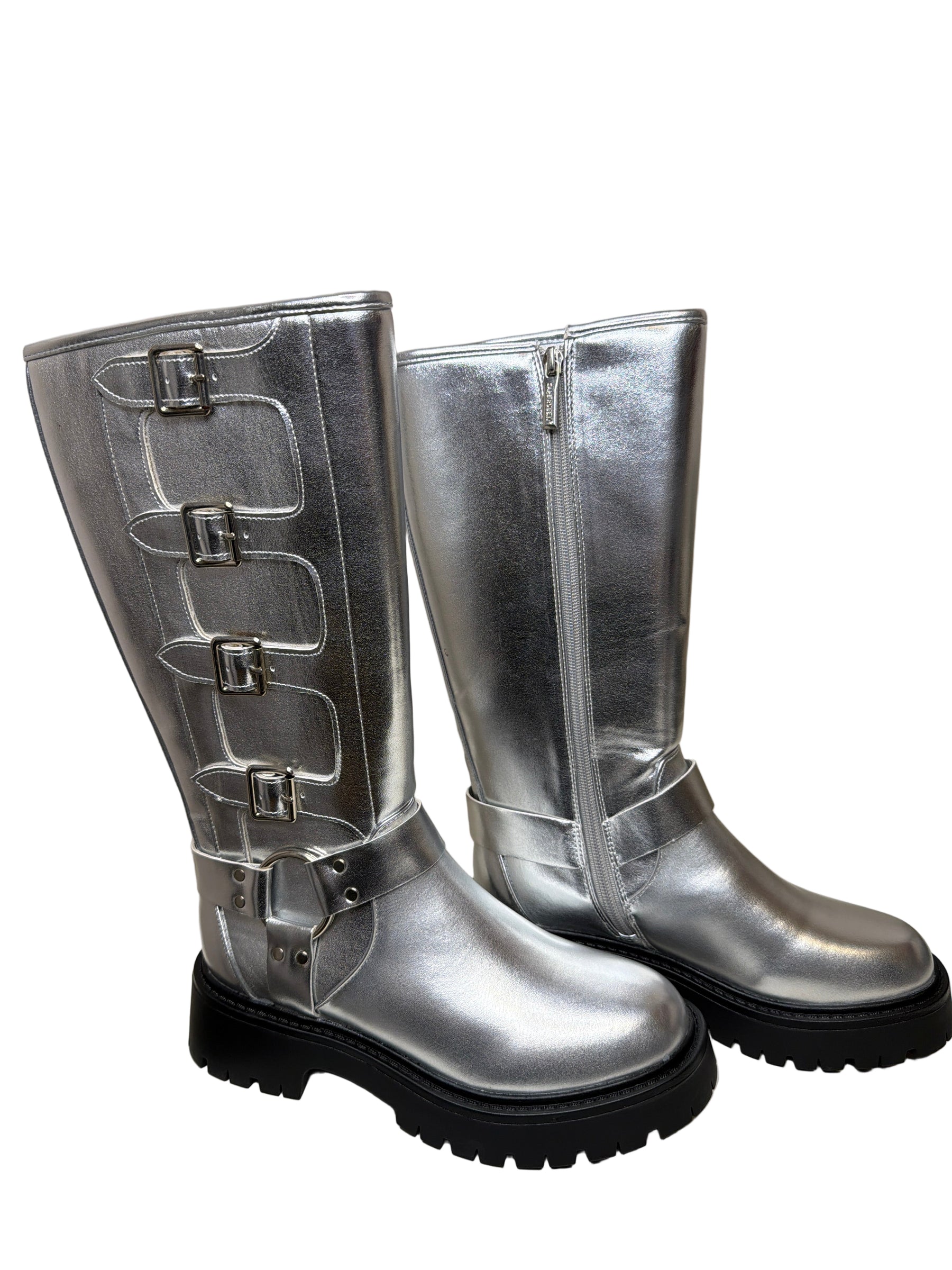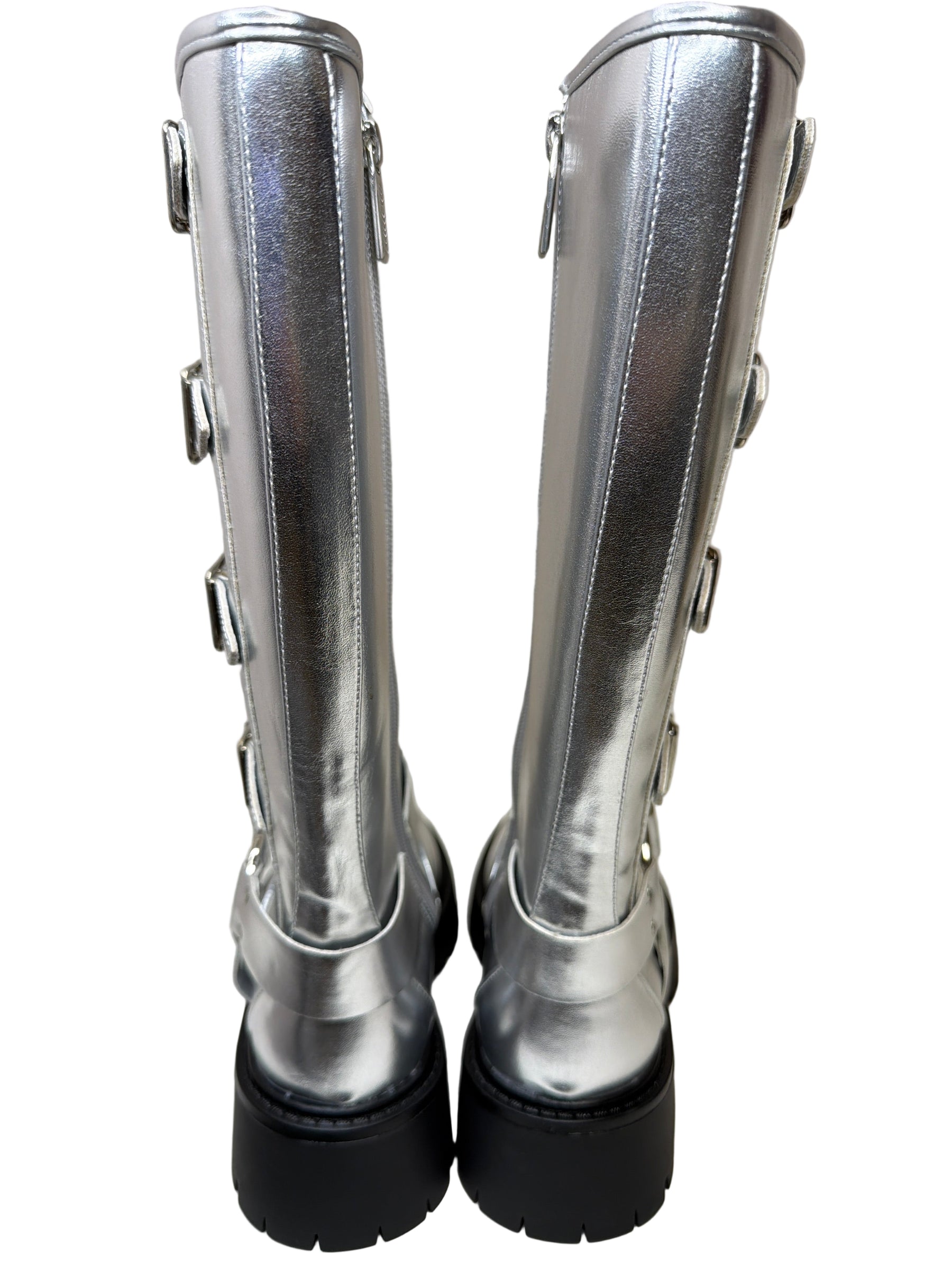 Silver Faux Leather Heels