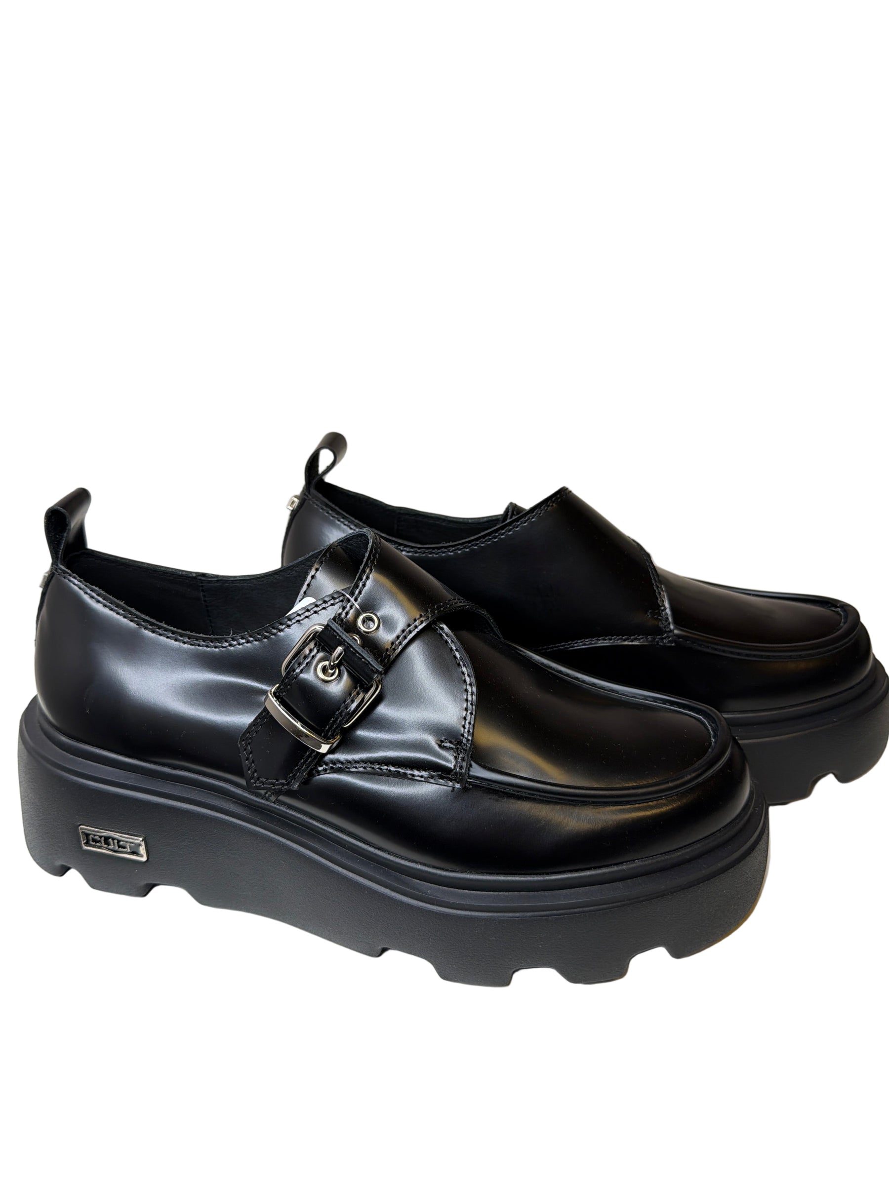 CULT New Rock Platform Loafers – Black (Women) is crafted from leather upper; lug rubber sole for everyday comfort. Chunky platform loafers with smooth leather upper and bold lug sole for statement style. Care: remove surface dirt with a soft brush; wipe clean; air dry; use protector spray suitable for the upper material.